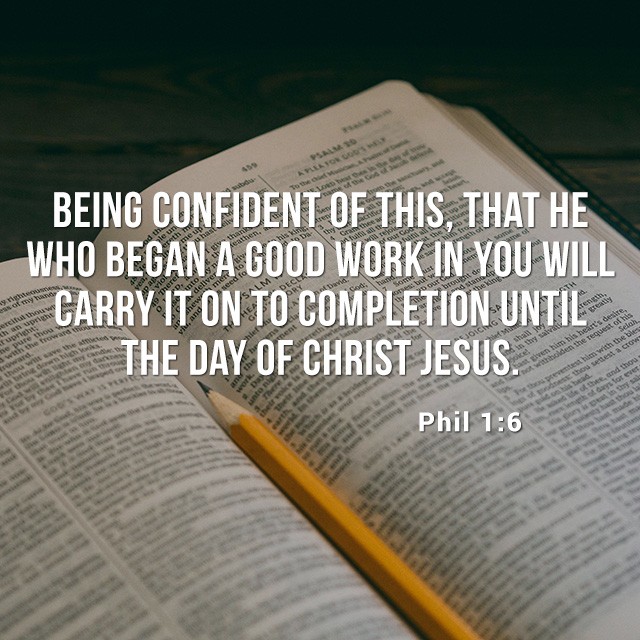 I finish by saying this “ the one who started a good work in you will carry it on to completion. “ Philippians 1:6